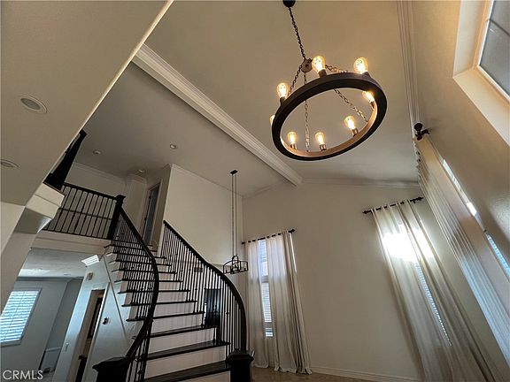 WELCOME TO 15 BERLAMO A GEM NESTLED IN THE HEART OF RSM, WHERE WARMTH AND ELEGANCE MEET! With award-winning schools and a safe neighborhood, this remarkable home is the epitome of comfort and convenience. Boasting a high cathedral ceiling adorned with an artistic light fixture, this residence immediately welcomes you with its grandeur and warmth. Featuring 4 bedrooms and 2.5 baths, this property also has a vastly spacious family room highlighted by a premier stone accent wall. The heart of the home is the open, remodeled kitchen, a culinary haven equipped with the latest appliances and quartz countertops. The attention to detail is evident with the painted interiors and exteriors of the house and crown moldings that adorn the entire home. Ascend the iron-accented staircase with solid hardwood stairs to the private quarters upstairs, where premium vinyl flooring leads you to a luxurious master suite. This retreat features a barn door entry to the remodeled bathroom with dual sinks, a standing shower, a sunken bathtub, and a vast walk-in closet. All bedrooms, alongside a conveniently located laundry room, offer closets, ceiling fans, and wood blinds. The low-maintenance backyard promises endless relaxation and leisure moments without the upkeep hassle. Residing in a very safe community, 15 Berlamo not only offers privacy and tranquility but also access to HOA amenities across RSM. Enjoy tennis courts, basketball courts, pickleball courts, volleyball courts, swimming pools, and the exclusive Lago Santa Margarita Beach Club. Plus, the house is within walking distance from Arroyo Vista Park, a haven for outdoor enthusiasts with playgrounds, swimming pools, tennis courts, and more.