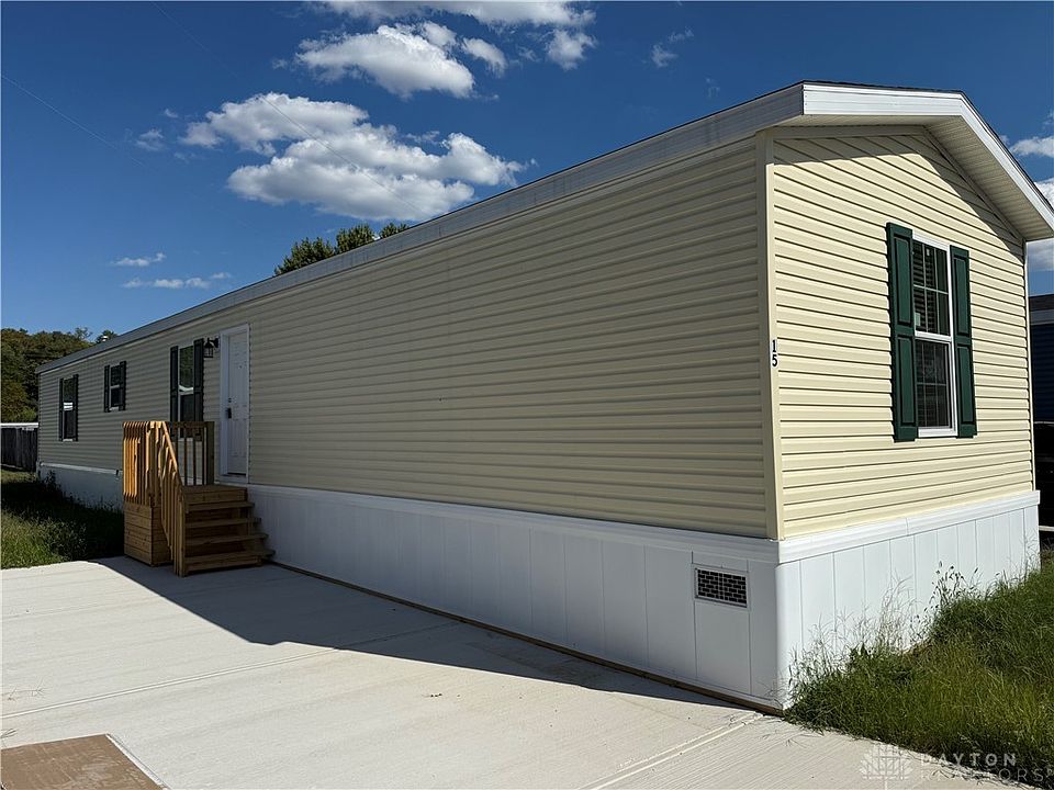 Welcome to 15 Beth Ln in the Ideal North community—Miamisburg (Miamisburg Schools). This brand-new 2025 Champion Home offers 3 bedrooms and 2 baths with a spacious, open feel. The galley-style kitchen with sleek black Whirlpool appliances flows into the dining area and family room—great for everyday living and entertaining. A convenient laundry room with exterior access sits just off the kitchen. The primary suite features a generous walk-in closet and a private full bath with a walk-in shower. Down the hall, two additional bedrooms share a second full bath. Close to everything—Austin Landing, I-75, and I-675 for easy shopping, dining, and commuting.