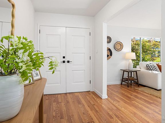 Tucked at the end of a peaceful cul-de-sac, this single-story Ranch home blends classic comfort with modern updates and a touch of backyard magic. This 4-bedroom, 2-bath home offers excellent natural light, a kitchen that's open to the family room, and updated bathrooms with contemporary finishes. The floor plan also includes a formal living room and separate dining area, ideal for gatherings and holiday meals. A beautiful fireplace with mid-century design is a focal point. Upgrades include refinished hardwood floors, new baseboards, laminate flooring, and double-pane windows and sliding glass doors. Other improvements include new interior paint, a newer roof and furnace (2023) and a newer, low-maintenance stucco exterior. Perhaps best of all is the special settinga flat, quarter-acre lot with a beautifully landscaped backyard that feels like a private retreat. Mature trees, colorful plantings, and open spaces create a magical atmosphere that's both peaceful and inviting. A spacious greenhouse offers endless possibilities for gardening enthusiasts. Room for ADU or pool (check with city). Conveniently located close to pickleball courts, schools, and downtown shopping, this warm and welcoming home combines comfort, character, and tranquility.