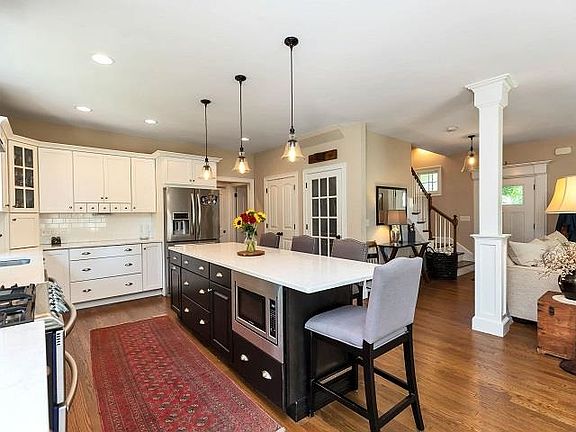 Charming three bedroom home in excellent commuting location close to Portsmouth and Exeter. Wonderful open concept with hardwood flooring on first floor and carpet in bedrooms on second. The deck is an oasis with easy access from kitchen- dining area to enjoy warm weather eating. The custom kitchen has good storage and welcoming counterspace. There are two three quarter baths and one full. The three quarter bath on first floor makes study useful and presently used as a fourth bedroom . The upstairs bedrooms are spacious with very ample storage. The lower level has a heated mudroom with built-in wall for outerwear storage. The peaceful well landscaped yard is a setting for many outdoor activities. Make this beauty yours. Agent is related to seller.
