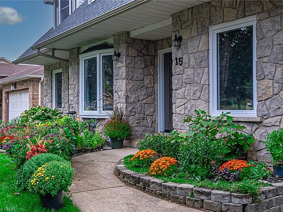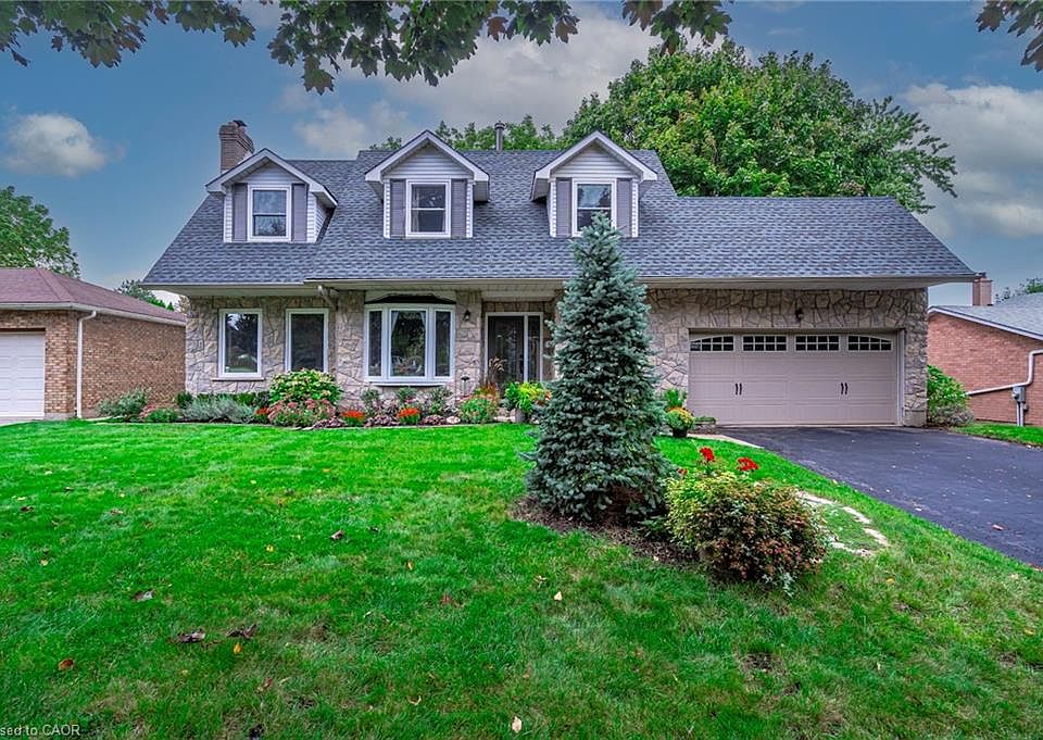 Tucked under a canopy of mature trees in one of Grimsby’s most peaceful lake-adjacent neighbourhoods, 15 Blue Forest Drive is where space, comfort, and timeless charm come together. With over 2,000 sq ft above grade and a fully finished basement, this home offers a family-friendly floor plan with thoughtful zones for relaxing, gathering, and entertaining — both indoors and out. Inside, you'll find five bedrooms and 3.5 bathrooms across three finished levels. The main floor invites connection with a bright and welcoming living room, a separate dining space with bay windows, and a cozy family room anchored by a classic wood-burning fireplace — perfect for game nights and laid-back evenings. The refreshed kitchen features granite countertops, updated cabinet doors, and pull-out storage, with direct access to the backyard patio and gazebo — ideal for hosting summer dinners or morning coffee in the fresh air. Upstairs, four spacious bedrooms include a primary suite complete with walk-in closet and private 4-piece ensuite. The finished basement offers exceptional flexibility with a rec room, home gym, guest suite or office, and a full 3-piece bath. Outside, the home shines with curb appeal — lush, colourful gardens frame a stately stone façade and newer windows. The fully fenced backyard features a covered gazebo, landscaped patio, garden shed, and certified hot tub wiring ready to go. Located just one street off Lake Ontario, you’re across the road from Cindy Court Park, steps to Grand Avenue School, Bal Harbour Park & lakeside trails, and just minutes to Station One, Bench Brewery, boutique gyms, bakeries, and multiple wineries. With its spacious layout, finished basement, and unbeatable location, this home is tailor-made for growing families ready to level up their lifestyle in Grimsby.