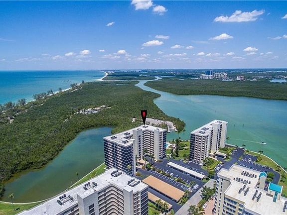 Enjoy unobstructed panoramic Gulf and bay views from this rarely available corner penthouse, just steps to Vanderbilt Beach and Delnor-Wiggins Pass State Park. This light-filled residence offers water views from every window and a spacious wraparound lanai, plus a private screened balcony off the primary suite. Completely remodeled with high-end modern coastal finishes. The open layout features two bedrooms and two full baths, neutral flooring, updated kitchen and baths, and electric storm shutters for peace of mind. A covered parking space and separate owner storage are included. Surf Colony II offers outstanding amenities: a bayside pool with lap lanes, tennis, pickleball, bocce, kayak storage, and the opportunity to lease boat slips when available, with direct Gulf access and no bridges. Enjoy daily beach walks, paddle through Turkey Bay’s mangroves, or watch dolphins and manatees from the shore. Located in one of Naples’ most desirable coastal neighborhoods—close to LaPlaya Beach Club, The Ritz-Carlton, Mercato, Waterside Shops, and Artis–Naples. The location, the views, and the lifestyle are exceptional. A perfect retreat for beach lovers, boaters, and sunset seekers alike. Move-in ready.