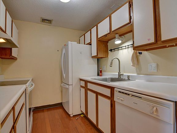 This Spacious top-floor condominium unit at South Landing Condominiums offers a nice floor plan and great space. There is a fully applianced galley-style kitchen with dishwasher, disposal, and refrigerator, and with plenty of cabinet space, a full-size dining area that is open to a large living room with wood floors throughout. The sliders lead to a private balcony that overlooks the fenced-in common grounds. There are two bedrooms with ample closet space, and the master bedroom has a full private bath. There is also another full bath plus an in-unit washer and dryer. Convenient location walking distance to the bus line, and close to Walmart, H-Market, and Kam-Man market. Pet-friendly building, a dog or cat is ok with $25 monthly pet fee as required by the Condo Association, one car deeded parking space, plus additional guest parking. Applicants must have a strong credit score and an excellent on-time payment history, as well as verifiable employment/income history. The move-in costs are the first month's rent and last month's rent. The unit is occupied; a minimum of 24-hour notice is required for showings. Contact the agent for the showing schedule.