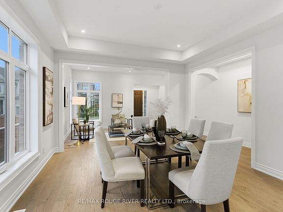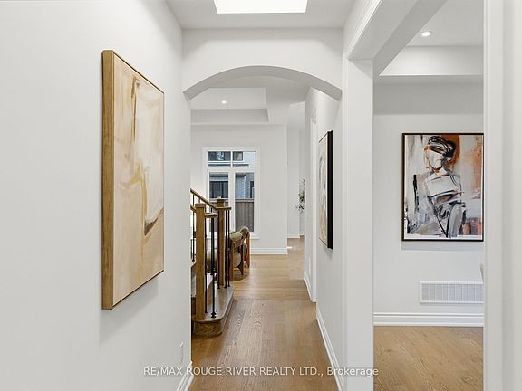 Welcome to The Cedarvale B Model by Heathwood Homes, a stunning all-brick and stone residence in the desirable Country Lane community. Offering over 4,400 sq. ft. of finished living space, this home showcases 4+1 bedrooms, 5 bathrooms, and a fully finished lower level with the exceptional craftsmanship Heathwood is known for. The main level features 10-foot ceilings, smooth finishes, and engineered hardwood floors throughout. The living room overlooks the front yard with pot lights and a warm, inviting atmosphere. The formal dining room impresses with a coffered ceiling and elegant proportions-perfect for entertaining. The great room steals the show with 11-foot coffered ceilings, a fireplace, and bright windows, seamlessly connecting to the designer kitchen. The chef's kitchen offers a center island, breakfast bar, stainless steel appliances, upgraded soft-close cabinetry, valance lighting, and a servery with pantry storage. The adjoining breakfast area opens to a fenced backyard, ideal for relaxed family mornings. The primary bedroom is a private retreat with his-and-hers closets and a spa-like 5-piece ensuite featuring a frameless glass shower and freestanding tub. Three additional bedrooms each include walk-in or double closets and ensuite or semi-ensuite bathrooms with Caesarstone countertops and porcelain tile. The finished lower level with 9-foot ceilings adds valuable living space, including a recreation room with pot lights, a 4-piece bathroom, and a fifth bedroom with a double closet. A wet bar rough-in offers added versatility. Additional features include stained oak stairs with metal pickets, pot lights throughout, upper level laundry with cabinetry, and a beautifully landscaped front yard. Experience luxury living at its finest-The Cedarvale B by Heathwood Homes is where design, comfort, and quality meet in perfect harmony.