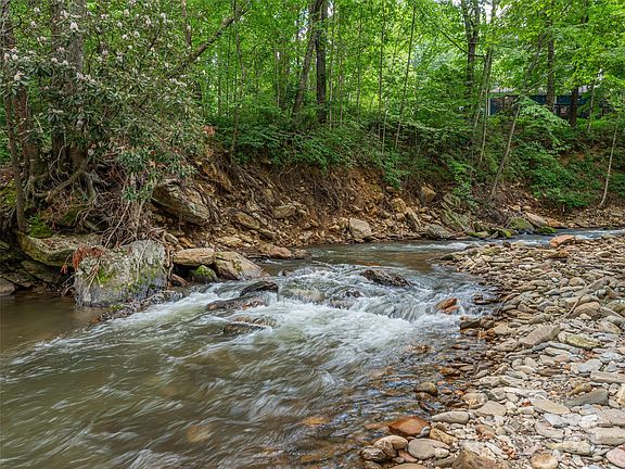 In the heart of Maggie Valley, this charming creekfront log home offers a blend of rustic character and modern comfort in a highly convenient location. Set on a level lawn overlooking the peaceful sights and sounds of the creek, the home features abundant outdoor living space with covered decks and porches ideal for relaxing and entertaining. Inside, a vaulted two-story great room creates a warm and inviting atmosphere with soaring ceilings and natural wood finishes. The main level provides easy living with a spacious primary bedroom and laundry room, while the upper level includes two additional bedrooms, a full bathroom, and an open loft perfect for a home office or extra lounge space. The lower level offers incredible flexibility with an oversized garage, bathroom, and the potential for 2nd living qtrs. The property is also being offered with the adjoining creekfront parcel(735k total). This property is a rare find in one of WNC’s most scenic and sought-after mountain communities.