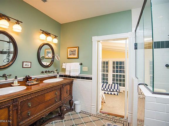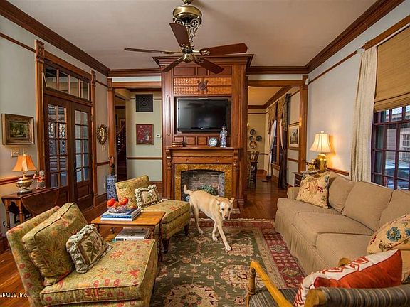 One of the finest historic homes in St. Augustine! Originally built in 1889 for the Countess de Montjoye wife of a French aristocrat and socialite of the Golden Age the home was designed by Henry Flagler himself. The classic Victorian interior and Spanish Revival exterior combine two of the most common architectural styles in this Old City district of St. Augustine. This home was lovingly and impeccably restored to every authentic detail: the three bedrooms, 2.5 baths, living room, formal dining room, music-alcove, and kitchen boast its original grandeur, while modern upgrades provide comfort and convenience.Enter from Bridge Street through the iconic red gate into the lush garden with paver walkways and old, stone courtyard walls. Inside you will find intricate woodwork from the heart pine floors and cypress crown molding to the two elegant wood-paneled fireplaces and stunningly carved staircase. The unique kitchen includes a charming brick-chimney oven, plus the contemporary conveniences of top quality appliances, a hidden pantry, & stove island. Upstairs the Master Suite features an indulgent bath, sunlit sitting room, & walk-in closet. The covered balcony on the second floor enjoys a view of the bay and wraps around the home for extra alfresco living. Located in the most sought-after neighborhood of the nations oldest city, this home is just blocks away from world-class restaurants, art galleries, boutique shops, and the marina. This piece of living history is waiting for your new story!