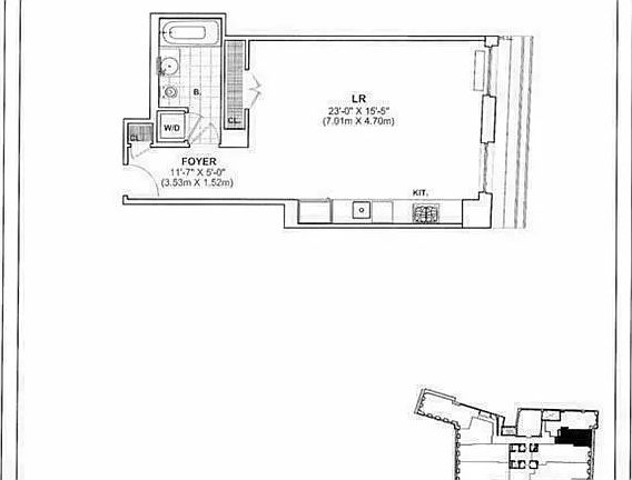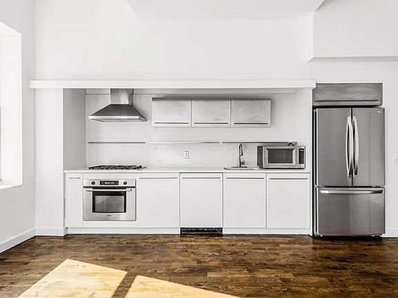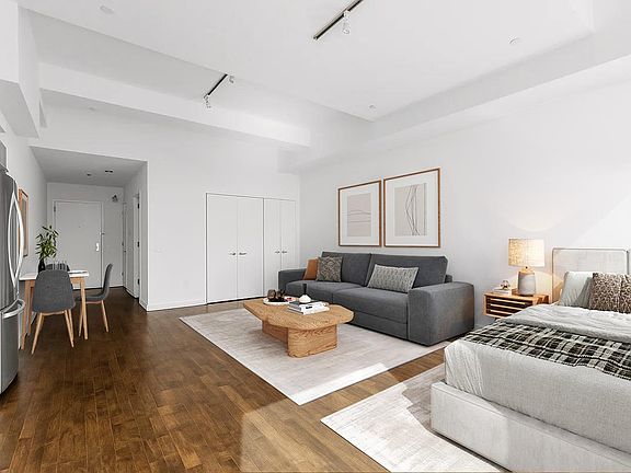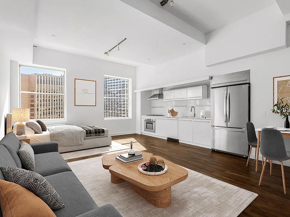 This high floor unit offers a Southern exposure and oversized windows creating a bright and comfortable environment. A generous foyer welcomes you into this expansive layout and into a sophisticated and modern apartment. Oversized sleeping area that fits a queen size bed plus furniture. The primary bath includes a sink and a bathtub. The spacious living room includes custom lighting and high beamed ceilings creating a unique environment to dine and entertain. The chef's kitchen offers stainless steel appliances and is ready to welcome your culinary creations. An abundance of closet space is ready to welcome your belongings.