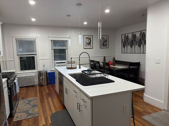 Welcome home to this beautifully designed 4-bedroom, 1 bathroom apartment offering comfort, style, and convenience in every detail. Perfect for families, roommates, or anyone seeking extra space, this unit features a modern kitchen with full-size stainless steel appliances, and ample cabinet and counter space. Located in a quiet neighborhood close to shopping, dining, schools, and 1/2 mile from the train station. The apartment has a large outdor deck for your enjoyment it combines the best of comfort and accessibility.