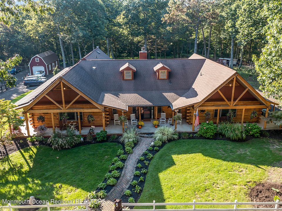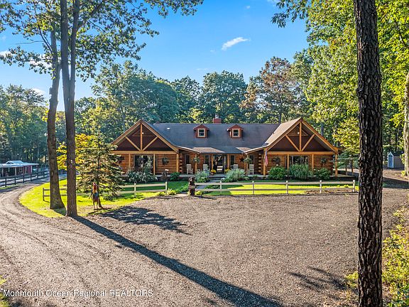 IT DOESN'T GET ANY BETTER. (6.28 Acre) MINI ESTATE! Set back off road. As you enter through the Gates this AMAZING LOG Home will Blow you Away! Peace & Serenity Surround You as you relax on your Wrap Around Porch Enjoying Nature. Walk in to the Foyer in your Custom Built Log Home and you will know this is your NEW HOME! The Grand Great Room Offers Vaulted Ceilings & Wood Burning Fireplace for those Cozy Evenings. Large Living Room Offers Sliders leading you to the AMAZING YARD! You will LOVE the Kitchen offering Granite Countertops, Double Oven, Center Island & Large Pantry. Dining Room Conveniently Situated off Kitchen. There are 2 Master Bedrooms. 1st Floor Master Bedroom offers a Large Master Bath with Soaking Tub, Walk in Closet, Double Sinks & Recessed lighting. Off the Kitchen Upstairs is an Additional Bedroom with FULL BATH. Wait till you see the INLAW SUITE! Perfect for Guests, Inlaws Etc. There are 2 Bedrooms 2 Full Baths, Living Room, Separate Entrance & Kitchenette Complete with Sink & Refrigerator. Privacy at it's Best! If you are a Hobbyist there is a LARGE 14x40 2 Story Newer Barn! You can fit 2 Cars Front to Back. There is a 2nd Floor Full Walkable Attic. There is also an additional storage shed & Paddocks. This is a FULL WORKING FARM with Plenty of Room for Kids to Play & Animals to Roam. This Property offers plenty of room for Pool, Bocce or Tennis. The Possibilities are Endless Here! Enjoy Sitting under your Pergola out back on the Pavers enjoying the Views. This Beautiful Custom Log Home offers 3 Zone Radiant Heat & 2 Zone Central AC. Home is Flooded with Sunshine! Lots of Windows & Solar Panels Give you Little to No Electric Bill. Plenty of Upgrades including Central Vacuum & Pella Windows & Doors. EXCELLENT SCHOOLS & Close Proximity to Freehold Raceway Mall, Shopping, Restaurants, Movies Make this a VERY DESIRABLE AREA to Live. YOUR DREAM HOME IS BECOMING A REALITY! We think this Home is Amazing! Come See for Yourself.