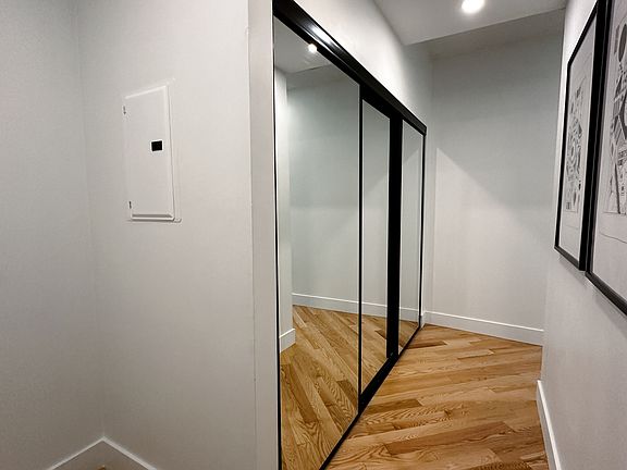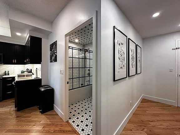Welcome to 15 Bruyeres Mews "The Vibe" Floor Plan Rent-Controlled | Fully Renovated | Furnished | $3,000/mo All-Inclusive Spacious 1 Bed + Den + 1 Bath with a balcony and southwest-facing waterfront views on the 9th floor. Includes 1 underground parking spot. Available now or May 1st. Interior Features: - Freshly painted with engineered oak floors - Separate foyer with 3-sider mirror closet, built-in storage, and LG Smart Washer/Dryer - Full bath with heated tile floors, LED lighting, gold Moen hardware, medicine cabinet, glass tub doors, and quiet ceiling fan - Unit Smart features: Automated blackout blinds (voice activated via HomePod), NEST thermostat (app), LED lighting (Globe app) - Kitchen: Matte black soft-close cabinets, quartz counters, under-cabinet lighting, island + 2 barstools, new Samsung Black Stainless Steel Smart Appliances: Dishwasher, Electric Range (w/ Air Fryer), Fridge (w/ water dispenser & ice), Over-the-Range Microwave - Den: Ford Motor Company inspired mural, adjustable desk/chair (can fit dining setup) Living Room: CB2 pull-out sofa, bucket chairs, Persian rug, coffee table, Smart TV, sconce lighting, access to balcony - Bedroom: Sliding door, Queen bed, EQ3 nightstands, LED/sconce lighting, 2-mirror closet door with custom closet, access to balcony Location: Across from Loblaws, Shoppers Drug Mart, Joe Fresh, LCBO, TD Bank, Pet Store, Starbucks, and Tim Hortons. Above Platis Dry Cleaners, Subway sandwich shop, dental offices, and more. Short walk from Toronto Public Library, Stackt Market, King West's nightlife, Rogers Centre, TIFF Bell Lightbox, Budweiser Stage, Exhibition Place, BMO Field, Coronation Park, Little Norway Park, Canoe Landing Park, Garrison Common Park, Fort York National HIstoric Site, and Billy Bishop Airport Sits on 511 & 509 TTC lines and is surrounded by Bike Share Toronto stations Close to Zipcar and Communauto vehicles Building Amenities: Secured entry w/ phone buzzer, security guard Newly renovated gym & lobby Locked mail/package rooms Theatre room (free), party room ($50), guest suite ($125/night) Rooftop lounge & terrace with BBQs, tanning deck Garbage chute on every floor, 2 elevators & stairwells Secured Bike Parking Rental Details: $3,000/mo All-Inclusive (Furnished + Utilities + Internet + Underground Parking) Free limited guest parking First & last month required Application + income restrictions apply Small pets allowed, non-smoking