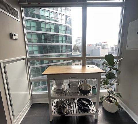 Live bright and bold in this stunning corner suite at LTD Condos in the Fort York neighbourhood. With 9-foot ceilings, floor-to-ceiling windows, and an expansive south-facing view, this space is bathed in natural light from sunrise to sunset. Step onto your private balcony and take in the shimmer of Lake Ontario or the buzz of the downtown skyline below. Inside, the open-concept floor plan is airy and versatile, designed for both relaxed evenings in and effortless entertaining. The modern kitchen connects seamlessly with the living area, creating a natural flow for everyday life. Residents at LTD Condos enjoy a full suite of amenities including a rooftop deck, a fully equipped gym, party and meeting rooms, guest suites, visitor parking, and secure bike storage. Step outside and discover one of Toronto's most walkable neighbourhoods. Wander the waterfront trails, explore the parks that line Lake Ontario, or head to the Rogers Centre where the Blue Jays are currently lighting up the season. Local favourites like Stackt Market, The Well, and the cafes of Harbourfront are all within a short stroll. Grocery runs are a breeze with Sobeys and Loblaws nearby, and TTC access is at your doorstep with quick links to the subway, Union Station, and the Gardiner Expressway. Includes both parking and a locker, which are a true luxury downtown. This is not just a place to live; it's a lifestyle defined by light, location, and limitless energy.