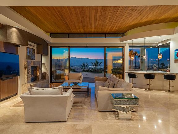 SELLER IS MOVING TO PALM SPRINGS AND WILL CONSIDER TRADE OR SELLER FINANCING. FURNISHED PER INVENTORY & MOVE IN READY! For open house info & access call listing agent. A Narendra Patel masterpiece at Mirada Estates is arguably the most prestigious custom development in the entire valley. Perched at the top, this custom estate has one of the best lots & location w/ no neighbors on three sides of the house. This is a truly spectacular world-class house for the most sophisticated buyer. One touch, whole home Lutron lighting and Sonos sound system with phone apps! Beautiful courtyard entry w/ a custom rock waterfall. ''Wow'' factor 360 big mountain & sweeping valley views captivate the soul. Enjoy amazing breathtaking city lights visible from nearly every room in the home! The home is single level, 4 bedroom ensuites, 4 and a half baths, a large detached casita with kitchenette, office or gym w/ great views & sits on .68 Acres. Gourmet kitchen w/ center Island, top of the line appliances, 100 bottle wine refrigerator, warming/cooling drawers, complete w/ breakfast nook. The many features include 2 remote control fireplaces, remote control shades, paid for solar, central floor vacuum system, wet bar & formal dining area. Large entertaining back yard w/ custom pool & spa, w/ large tanning shelf, built in BBQ & multiple dining areas. House is designer furnished per inventory w/ every detail including Frette bedding. Ritz-Carlton residence membership included! Benefits are discounts on fitness center, spa & restaurant. This very special estate is a must see & is one of one