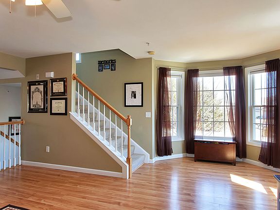 Lovely end unit in Hilltop Farms! Two-bedroom, 2.5 bath townhome offers three living levels, overlooks huge field & forest w walking & jogging trails. Great natural light, open floorplan throughout main level for ease of entertaining from the expansive living room through to the deck. Custom kitchen/dining w large island for additional work space & storage, stainless steel appliances, & pantry closet. Sliders off dining space open to the deck for al fresco meals in warmer weather. Two large bedrooms, each w their own full bathroom & large walk-in closets. Entry/ground level has direct-access garage w space for storage, large entry foyer, half bath, and bonus room for use as home office, gym, playroom, or guest space - you choose! Great neighborhood, gas heat, Central AC, town utilities. Enjoy maintenance free living in your new home & convenient access to area amenities & commuter access to routes 140, 122, I-90, and the train. Pet friendly & move in ready!