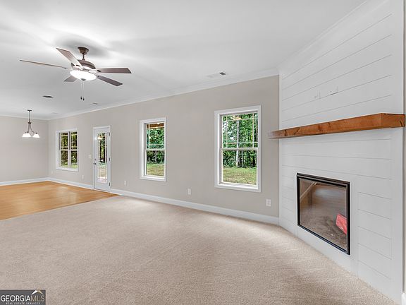 PRICED BELOW APPRAISED VALUE! Seller says Bring All Reasonable Offers! 100% Financing Available and Seller will contribute $10,000 to Buyers Closing Costs. Welcome to Turtle Cove, a beautiful community at Jackson Lake offering a nine hole golf course, swimming and tennis, a clubhouse restaurant, and lake access. This newly completed craftsman style home is a foreclosure opportunity that is 100 % finished and ready for its first owners. The open floor plan features a cozy great room with a shiplap fireplace and floating mantel, an eat in kitchen with breakfast bar, stainless steel appliances, quartz countertops, and a pantry, along with a formal dining room accented by a tray ceiling & heavy trim. A guest powder room is also located on the main level. Upstairs you will find an oversized primary suite with a spa inspired bath that includes a walk in tile shower, soaking tub, dual vanities, and his & her walk in closets. Three additional secondary bedrooms are all spacious and share another full bath. The large covered patio is perfect for cookouts and entertaining after a day on the lake. The property also features an irrigation system to keep your yard looking its best.