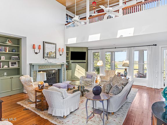 PRIVACY PRIVACY PRIVACY on this 2 ACRE COMPOUND with ELEVATED views of both MARSH and OCEAN a rare BHI Middle Island find. Tucked away on this 2 acre estate are 3 separate structures, the elegant main house, the charming 2 bedroom guest retreat and the screened pool house. DOCK access to private Middle Island. Showcasing Harry Watkins' design and Telesis' quality construction, with cooper roof these homes blend luxury, comfort and privacy with ocean breezes and panoramas to sea. The primary home's spacious, sun-drenched two-story living area offers a custom fireplace, wet bar, skylights, and wall of glass. Savor sunrises and nature scenes inside or on the extensive, secluded covered porch. The nearby handsomely appointed dining room boasts designer details, and its three sides of windows surround you with lush tableaus. Beyond the big, sunlit kitchen features a brand-new cooktop and ovens, as well as other professional-grade stainless appliances-including a wine cooler. You'll also appreciate the granite counters, generous island, walk-in pantry, and how it flows into the sunny breakfast space. Across is a bright Queen suite with a private bath. Farther, the huge Primary King has a large sitting area, masonry fireplace. The getaway's top floor houses a landing with an office and gathering spot, and a balcony offering ringside seating for watching marsh and Atlantic tides. From here, a ladder leads to a perch with views from the Atlantic to Southport! The home's lower level includes another bedroom with two Full beds, a bath with tub/shower, a workshop, and a craft room. The Guest Home's offers your guest or adult family true privacy with a light-filled central two-story living/dinning space with a sleeping loft and two suites each with private bath and porches. Conveying with three carts, this sanctuary grants an unparalleled lifestyle. Some exclusions. Inquire about club membership