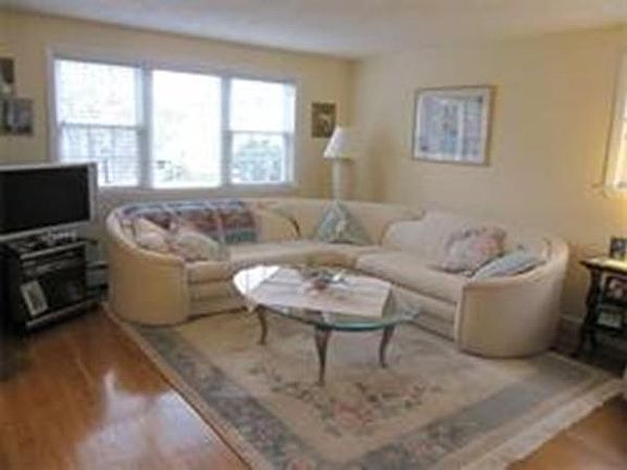 This duplex unit in an owner occupied two family brick residence is near Newton Centre and Route 9 yet sited on a cul de sac near wooded conservation land. With 1250+ square feet of living space on 2 levels, the first floor consists of a living room, dining area and eat in kitchen with access to shared deck, and a half bath. The second floor has 3 bedrooms and one full bath. There is a lower level bath with shower, full size washer and dryer, and 2 "extra" rooms. There is off street assigned parking for 2 cars. Central air conditioning, hardwood floors and carpeting. No pets or smoking please.