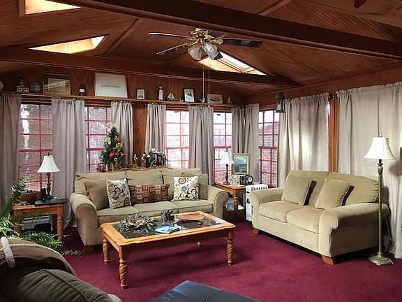 Must see this Water view quaint country cottage with lots of charm. Fully applianced kitchen with wood ceilings. Open concept from dining room to family room. Family room features wood vaulted ceilings and beams with lots of natural sunlight that extends to large deck overlooking a fenced in double lot and and above ground pool great for summer living. Master bedroom with walk in closet. Second bedroom has custom built ins. Large walk in closet in hallway also. Extra room can be used as formal living room, den or office. Front of home has flagstone walkway and a car port. Approved to connect with town sewer in Spring.
