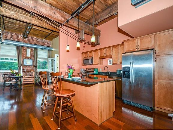 Chic loft with amazing exposed brick walls, high windows that fills this unit with light and hardwood floors. This unit was an original two bedroom and previous owner turned it into an expansive one bedroom. Complete open concept this unit features a beautiful kitchen with stainless appliances,gas cooking, island and plenty of cabinets. Bedroom has brand new carpet and spacious closet. Bath as two entrances and houses the laundry. Living room area allows for multiple layouts and has wall of closets that was part of the second bedroom. Unit rounds out with a dining area. Central air, deeded parking, pets allowed and outdoor space. Close to all downtown Amesbury has to offer . This is the home your looking for!