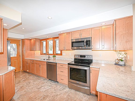 This pristine home has been meticulously maintained and thoughtfully updated with lovely, neutral finishes throughout. The first floor has been renovated to create an airy, open concept layout and has lovely refinished hardwood floors, front to back living and dining rooms that flow together, a new high-end kitchen, featuring quartz countertops, stainless steel appliances, custom cabinetry with switched undermount lights, heated ceramic tile floors, and dimmable recessed lighting. Also on the first floor, you'll find a spacious bedroom with double closets and a beautiful bathroom with heated tile floors, a quartz top vanity, and a spacious walk-in shower with glass doors. Follow the hardwood stairs to the finished daylight basement with more great living space, including a family room and bedroom, each with the required full size egress safety windows, and another nicely finished 3/4 bathroom. There's a laundry area with utility sink and ample storage space in the lower level as well. Step through the sliding glass doors in the living room to a 16' x 12' deck overlooking the southernly-exposed, flat, partially fenced yard with a good-sized shed. Most everything has been updated in the last 10 years, including the sheetrock, wall insulation, electrical, plumbing, heating baseboard radiators, paint, floors, interior and exterior doors, windows and the roof. Conveniently located near schools, parks, shopping, and dining, this home offers both comfort and convenience!