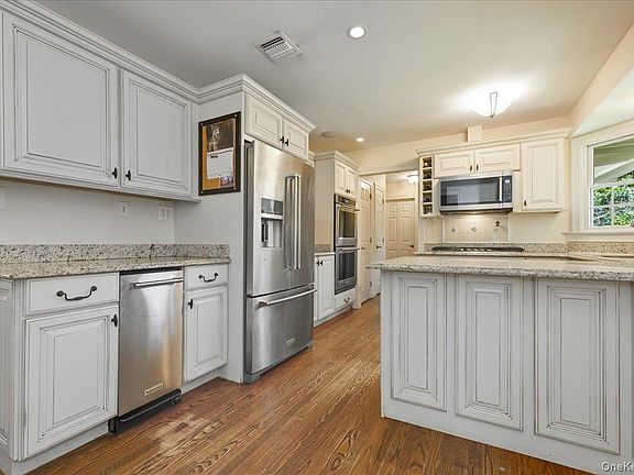 Discover this thoughtfully expanded ranch-style residence, featuring three generously sized bedrooms and two and a half bathrooms, all set on two serene acres. The spacious interior is ideal for hosting gatherings, with an inviting eat-in kitchen showcasing sleek granite countertops and a charming bay window. The open layout offers flexibility and room to grow, complemented by gleaming hardwood floors throughout. Recent upgrades include a new hot water heater and burner. Whether you’re starting a new chapter or looking for a peaceful retreat, this home is a rare find. Don’t miss this wonderful opportunity to make this your own. All in Harborfields School District #6.