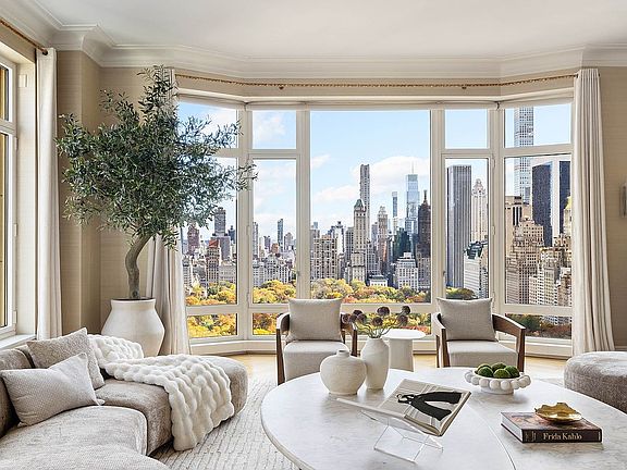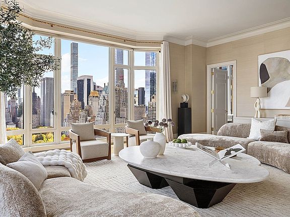 The building offers an impressive array of amenities, including 24/7 doorman and concierge services, private driveway, state-of-the-art fitness center, 75-foot indoor swimming pool with a skylight, private restaurant with in-home dining service, 20-seat private screening room, library and business center, and an outdoor terrace.