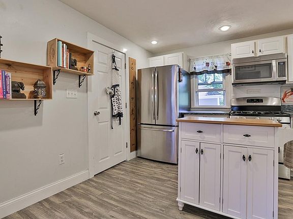 This delightful home located in the quaint center of Merrimac offers 3 BR, 1 Bath is just 10 minutes to Newburyport and convenient to all commuter routes. A welcoming entry shows the open concept Living/Dining area with newly refinished wide pine floors which flows directly to the renovated Kitchen with updated stainless appliances. A perfect place to entertain and cook with family and friend. Adjacent to the kitchen is the spacious Mudroom which also offers convenient first floor laundry. All 3 bedrooms are located on the second floor and include wide pine flooring. Additional storage is available in the attic and basement. The serene private yard is fenced in and offers several spaces for outdoor enjoyment and entertaining. There is a cement pad in the driveway in case you would like to add a Garage. This is a super value in Merrimac! Don't miss out. Showings to start after 5 p.m. Thursday. Open House Saturday 11-1. Call for your appointment today.