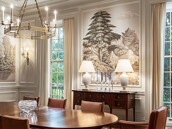Live authentically. Charlcote House. The James Swan Frick House, a monumental brick Classical Revival masterpiece by storied architect John Russell Pope, stands as one of Guilford’s most distinguished estates. Built between 1914 and 1916. Magnificent interiors steeped in history, thoughtfully reimagined by AD100 designer, Mark D. Sikes. A rare harmony of preservation and renewal. Artisanal architectural details that are inimitable. Charlcote House is an estate to be experienced. Marvel at the serenity and delight that you will experience within the walled gardens and ornamental fencing offering panoramic views of the city lights. Enter the luminous foyer with distinct marble floors and a sweeping staircase that sets the stage for revelry and repose. A chef’s kitchen where dinner parties come alive, and every detail elevates the joy of culinary artistry and effortless entertaining. The mahogany-paneled library, rich in texture and timeless detail, provides a sanctuary for reading and reflection. An elegant dining room provides a grand and gracious setting. Every meal is a celebration surrounded by divine wallcovering. Every gathering is unforgettable. Six remarkable fireplaces. Savor the warmth of the sun-filled conservatory. The primary suite is a serene sanctuary with indulgent bath, intimate lounge area, and signature curved wall of windows framing tranquil views. Unrivaled dressing rooms. Finished third floor is a modern loft style sanctuary with state of the art gym. Grand wrap around terrace. Inspiring top floor space for work, play or wellness. Light and joy abound. Meticulously landscaped grounds, sculpted gardens, and sweeping city vistas. Relish alfresco dining beneath the stars and quiet moments amid sculpted greenery. Hidden brick courtyard that is quite compelling. Detached brick building/garage with much potential. Xfinity Internet. Elevator. Cultivate your existence. The art of uniting human and home. Listed on the National Register of Historic Places