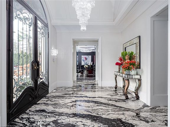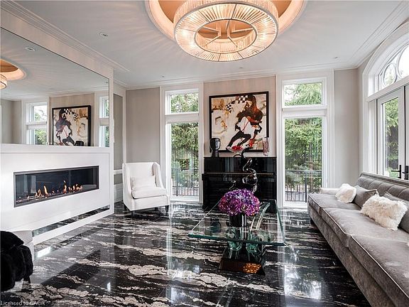 15 Chartwell Rd offers a lifestyle of unparalleled luxury.Drive through the gates & discover the grandeur of this palatial estate.South of Lakeshore,1 door from the lake on a half acre lot.Painstakingly curated, the contemporary limestone masterpiece you’ve been waiting for. Solid iron doors lead to a grand foyer revealing the opulent book matched marble floors.Floor to ceiling windows & French doors flood the house with light .Cascading waterfalls flank the hall.The Dining Room has statement lighting & servery making hosting a breeze.Soaring 18ft ceilings & a grand gas f/p are focal points of the Great Room,w/captivating views of the resort style yard.Experience culinary excellence in the black lacquer & glass kitchen by NEFF that features top of the line appliances & a B/I coffee machine & butlers pantry.The intimate Living Room w/ f/p is the ideal retreat.A main floor office w/built-in cabinetry.2 powder & 2 laundry rooms.The backyard oasis has a gunite pool,waterfalls,fire bowls,covered terrace & outdoor kitchen & f/p.The pool house has a change room,3-pc bath & servery.Towering trees surround the home & are positioned to create privacy.A stone driveway,circular fountain & lush gardens create a breathtaking landscape.Floating marble stairs divide the 3 levels of this home or, you can take the elevator.Skylights make the upstairs airy & bright.The principal suite has nearly 13ft ceilings, an exquisite 6-pc ensuite &2 walk-in closets. A private balcony overlooks the yard.3 add'l bedrms have 10-ft ceilings,private ensuites & walk-in closets.The LL caters to all family members.A 5th bedroom/ensuite makes an ideal guest suite.Gym,R/I Golf Simulator,home theatre,Wine Cellar & doggie Spa.The Games & Rec Rooms have a 2nd kitchen & walkout.Heated garage,baths & LL floors.Automation.Designed by Bill Hicks & features the artistic creativity of the KT Design Group. Located on Oakville’s Street of Dreams,this is an iconic living space designed to impress. Luxury Certified.