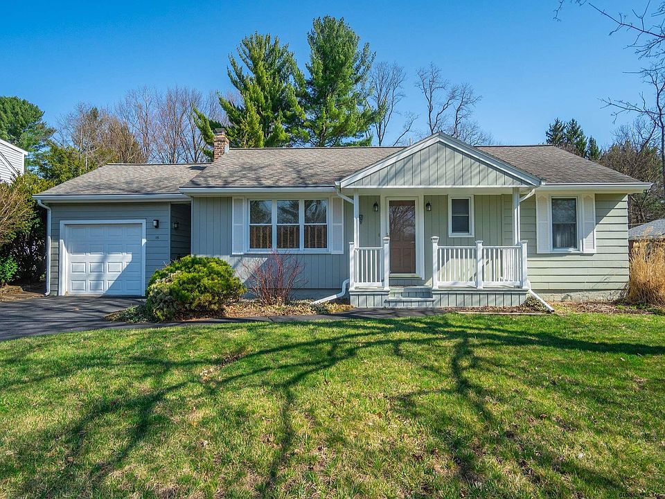 Starting out or slowing down? Looking for one level living with a great yard? Want a neighborhood that is tucked away from the hustle & bustle yet close to the town center & all of it's amenities? Here it is! This freshly painted, lovely 3 BR ranch is simply sweet. The traditional floor plan houses some fun amenities that served it's owners well over their decades here. The large breezeway is a great entry to the living space & leads to a sunny four season room that historically has served as a place for the whole family to dine, but could easily be a playroom or family room. The 3rd bedroom has two, small adjoining rooms that are perfect office or craft nooks and/or guest sleepover quarters. You'll be pleased to find HW floors, CA, a large yard, covered patio space & more!