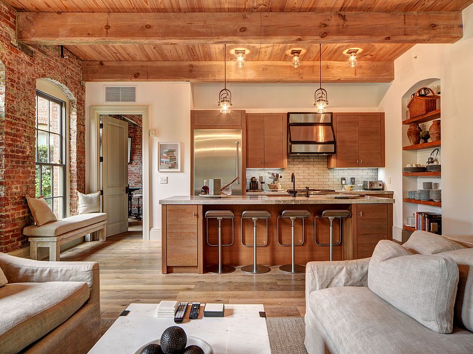 Instantly delightful, this two bedroom two bath home with 3rd bedroom flex space is accessed through a private garden off the landscaped Church Street courtyard at Watchcase. Offering a spacious greatroom with open kitchen and large center island, the oversized windows open onto the second larger garden allowing light to fill the residence. The exposed brick walls and old pine beamed 11 ft ceilings add to the architectural heritage and Watchcase spirit. The master bedroom offers a generous walk in closet and luxurious 5 fixture master bath with Watchcase signature wetroom. The second bedroom has an en-suite bat also accessible from the living room and gorgeous garden views. One block from Sag Harbor's charming Main Street and two blocks from the Hamptons only deep-water port, Watchcase is a 63 Loft, Town House, and Bungalow condominium amongst elegant landscaped gardens. Residents benefit from an amenity package, including: Resident Building Manager, Concierge, Heated pool, and The Watchcase Pavilion with fitness room, yoga studio, Peloton room, locker rooms with sauna, spa room, and events lounge with fireplace and catering kitchen. The Grand Lobby Living Room hosts the Vault Bar and a massive two-sided fireplace.