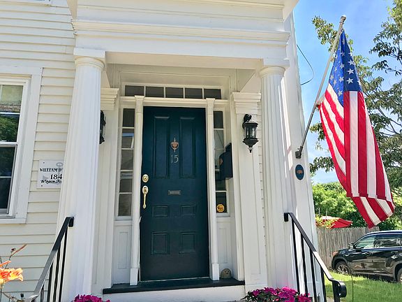 Beautiful, thoughtfully-renovated 1849 William D. Brown house in the heart of Historic downtown Mystic. 3,400+ sq ft, 4 bedrooms, 3.5 baths. Sunny living spaces with lovingly restored historic details through out. Enter into a center Den surrounded by windows and a gas fireplace. The front room offers a formal living area. There is a main level bedroom complete with a full bath. Down the hall is the dry bar perfect for entertaining that leads into the fabulous, expansive gourmet kitchen with room for a large dining table facing the gas fireplace plus a casual seating area, custom cabinets, premium appliances, large island with a breakfast bar, vaulted ceilings, skylights and wall of french doors leading out to the lovely fenced in private backyard. A well planned mudroom is accessed from the side entry near driveway for ease of dropping off coats and bringing in the groceries. Heading up to the second level, which has two sets of stairs, is the spacious Master Suite with a full spa bath, a gorgeous claw-foot tub and over-sized tiled shower, large closet and the laundry area. There are two additional bedrooms and a full bath off the large, sunny 2nd floor hallway with a built-in bookcase. Updates include a new roof and new windows, added insulation, and generator ready set up. This home is unique and a wonderful combination of historic charm with modern amenities located just a stroll to the Mystic waterfront and downtown for dining and shopping and the train station.