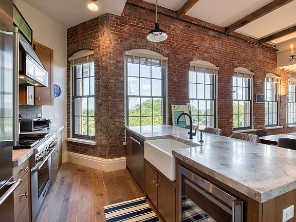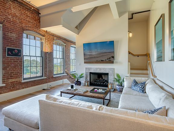 The Watchcase Factory in Sag Harbor Village: PH-402 is a 2321 s.f. 3-bedrooms, 2-full bathrooms and 2-half baths Penthouse on 2 living levels and rooftop terrace with water views, outdoor kitchen and one of the powder rooms. Building amenities include: concierge service, porters, full gym with locker rooms, yoga studio, spa treatment room, sauna, heated saltwater 64 x 22 ' pool, live-in resident manager and full-time superintendent. Parking available. One enters the apartment on the 4th floor into a large great room (kitchen/dining/living room with fireplace and powder room) with great views of the Harbor. Go down one flight to the bedroom level with two guest bedrooms sharing one bath, a balcony facing the waterfront and the sumptuous ensuite master suite. On the rooftop far above Sag Harbor Village is the water view terrace with seating and dining and a gas fire pit, an outdoor kitchen and a powder room which makes the rooftop a spectacular destination. Come sample the good life!