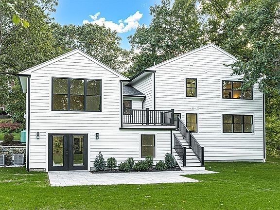 Indulge in modern luxury with this stunning home, set on a double 1/2 acre lot. This 4 bedroom, 4.5-bathroom home seamlessly blends chic style with an abundance of functional space. The architectural design is dramatic, showcasing soaring ceilings, a stunning contemporary fireplace, state of the art kitchen & sun filled living room which opens to a fabulous deck, creating a perfect indoor-outdoor space. The gourmet kitchen features a sleek design w/ a large island, high end appliances, & stylish open shelving. Upstairs, the lavish primary suite features a spa like bath & large custom closet. The 3 additional bedrooms offer ensuite baths. The walk out LL family room w/ wet bar is the perfect space to unwind. This property also features a 2 gar attached garage, mud room, office & laundry room. The double lot offers many possibilities ~ level w/ patio. This home is located near conservation trails, top-rated schools & Boston offering a lifestyle of convenience, luxury & tranquility!