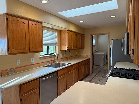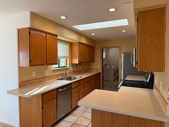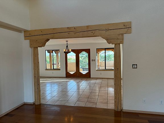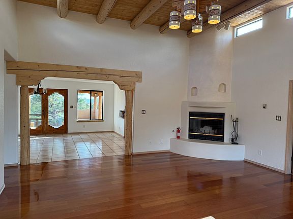 This spacious and beautifully updated 3-bedroom, 2-bathroom home is in the desirable neighborhood of Eldorado in Santa Fe and offers both Southwestern charm and modern comfort. Inside, you'll find two inviting living rooms with hardwood floors, a bright kitchen with stainless steel appliances and tile flooring, and three bedrooms with brand-new carpet. The master suite includes a walk-in closet. While details such as vigas, arches, high ceilings and a Kiva fireplace add character throughout. Recent updates include a new roof and new stucco. Additional highlights include radiant floor heat, natural gas, evaporative cooling, an oversized two-car garage with a freshly tarred driveway, and plenty of storage. Outdoor living is just as appealing with a portal and fenced backyard perfect for enjoying Eldorado's sunsets and open spaces. The community offers walking paths, a community center, and nearby shopping and dining, all just a 12-minute drive into Santa Fe. Rent is $3,500/month, first due at signing, tenant pays utilities, and a 12-month lease is required. 12 month lease Utilities not included
