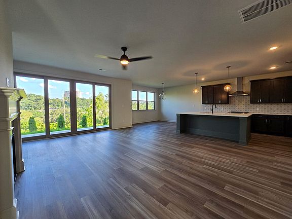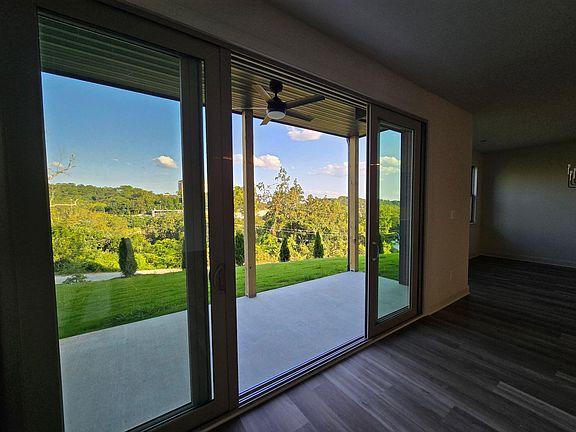 As you walk through, the home opens into a spacious living, dining, and kitchen area made for both everyday comfort and effortless entertaining. Whether you're hosting thirty guests or enjoying a quiet evening at home, this open layout flows beautifully. Through the 12-foot-wide quad sliders and triple dining windows, you'll take in breathtaking views of downtown Chattanooga and Lookout Mountain. Step outside to your covered back patio and functional, sodded yard, perfect for morning coffee or evenings under the stars.