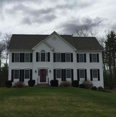 Clarke Farm home on a flat lot in a cul-de-sac & backs to trees...Jackpot! In a neighborhood of 32 homes w/ a quick commute to I-93. Enter home to find hardwood floors that lead you to a a kitchen with an island, granite and stainless appliances. A real brick back splash gives the kitchen character. Eating nook connects the family room with lots of light and gas fireplace. First floor office w/ french doors and front to back living/dining room. Second floor hosts a master with a tray ceiling, walk in closet and a bathroom w/soaking tub and granite topped vanity. Three additional bedrooms and full bath complete the second floor. But keep going, because up the stairs you will find a finished attic that is perfect for a playroom or office. Flat driveway that was made for scooter races and chalk art. Sprinkler system, blinds, wired for a generator are only a few of the perks. Easy to show! Be in for the next school year! Agent Interest