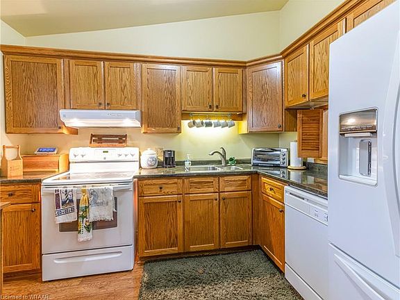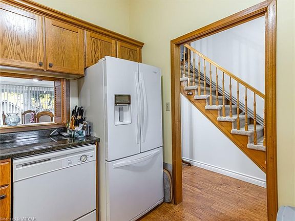 NOW'S YOUR CHANCE to live on Clear Valley Drive in Tillsonburg! Located on a quiet and desirable street within the Westfield School District. This 2 storey home features 3 spacious bedrooms, 2.5 baths, updated flooring and paint throughout(2013), vaulted ceiling, gas fireplace, spacious lower level rec room, nice pie-shaped lot and a 2 car garage. Enjoy your morning coffee on the front porch and host family gatherings on your rear deck with a large awning that provides shade in the hot summer months. Outside features also include interlock driveway, lawn sprinkler system, 2 sheds, one can be converted back to a greenhouse and the other shed houses yard equipment and storage for patio furniture. For those having mobility issues this home is perfect as there are 2 chair lifts and a walk in tub, as well as the primary bedroom being located on the main level with two closets and en-suite privileges to a 3 pcs. bath. Measurement are approx.