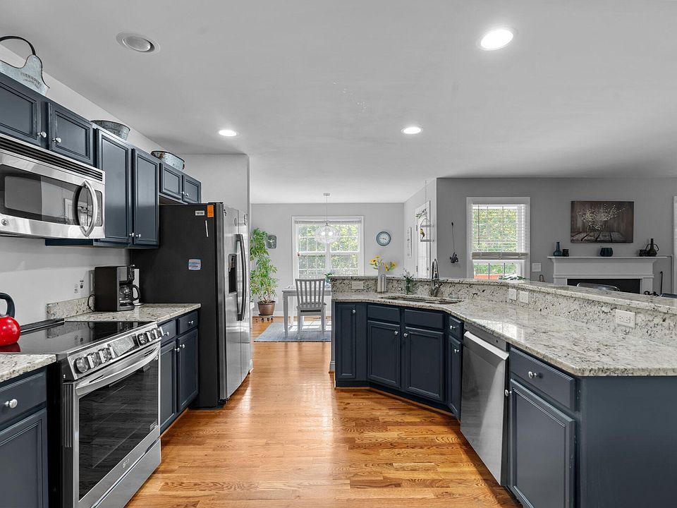 Get ready to be impressed by this fantastic home! This property offers a wonderful main house featuring 3 bedrooms, 2.5 bathrooms, and a bonus room - perfect for flexible living. You'll love the gorgeous, chef-inspired kitchen that opens to a cozy living room with a fireplace, plus a back deck ideal for entertaining or enjoying your morning coffee. The home also boasts beautiful hardwood floors, LVP flooring, and updated bathrooms throughout. there's more! The converted garage provides a separate living space complete with a full bathroom, kitchen, and its own patio. This is an incredible addition for visitors, potential renters, teenagers, or extended-stay guests. Imagine the possibilities - this space could even function as a successful Airbnb or VRBO! The seller is open to including all furnishings, making it a truly turnkey opportunity. Best of all, it can easily be converted back into a two-car garage, and all modifications have been fully permitted. This home is situated on a cul-de-sac lot that backs up to the community walking trail. The current owners have meticulously maintained every detail, so you can move in with complete peace of mind. The amazing gated community offers a resort-like lifestyle with a swimming pool, beach area, clubhouse, tennis courts, walking trails, and even the option to rent boat slips for lake adventures. Why vacation when you can live this way every day?