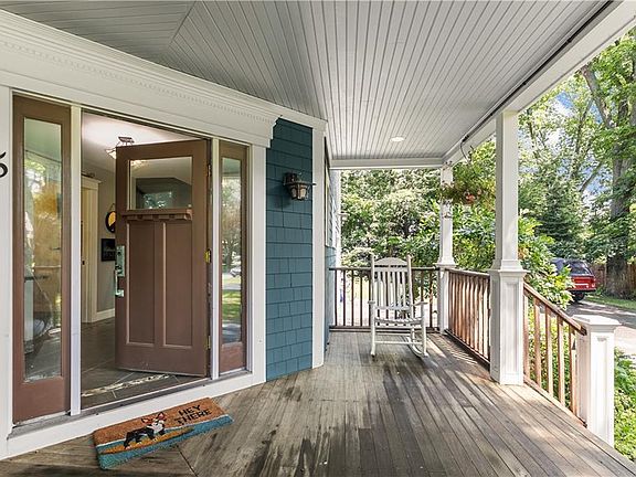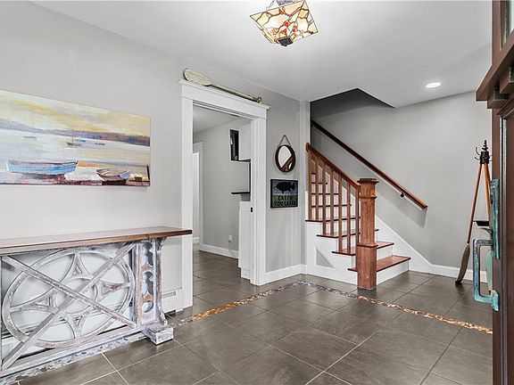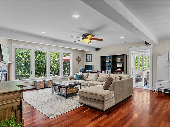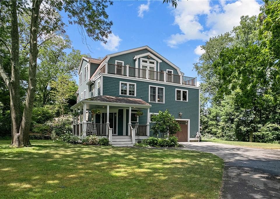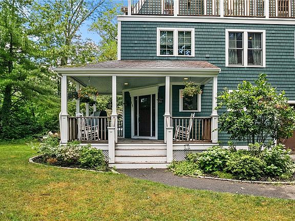 Bristol! Top of the Cliff. Perched atop the cliff of Cliff Drive, this very special shingle style home was constructed in 2007 and is located on Bristol’s desirable west side, in the welcoming Beach Terrace neighborhood, with a friendly and active neighborhood association, deeded beach rights and is a short walk to the East Bay Bike path. Easy ride to Colt Park and downtown Bristol. This home makes the most of its 19,000 sq. ft. property with magnificent rock formations, terraced gardens, and summer and winter waterviews. Home features Andersen windows (rated for high winds), hot tub, multiple mahogany decks, large covered porch, sunroom, patio, oversized 1 car garage with workshop area, additional basement storage, as well as separate shed/1 car garage and side area storage. Inside, this home has three bedrooms, 2 and a half baths, central air, propane fireplace and Brazillian Cherry floors. Additional bonus room presently used as oversized office and lounge with plenty of room for exercise equipment and wired for entertainment. Whole house painted in 2022, with new gutters installed. Property still has much more potential. Preliminary drawings for detached garage with loft apartment available (variance required).!