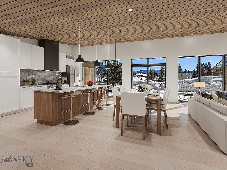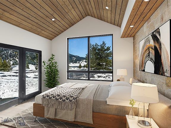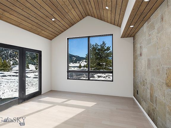 Custom built new construction Big Sky home with gorgeous mountain views and direct access to mountain biking, snowmobiling, and the Gallatin River to cast a line. Featuring a variety of meticulously curated high end materials including rock, wood, and steel inside and out, this home has textures and finishes typically only found in the private clubs. Four spacious bedrooms are located on the main level with an additional mother-in-law/guest suite on the second level featuring full size appliances, views, and over 700 additional square feet. The primary bedroom is elevated by a custom rock accent wall and an upgraded window package to relish in those mountain views. The open concept provides the perfect gathering space after a ski day at nearby Big Sky Resort, only a 15 minute drive. The oversized heated 1,037+/- SqFt garage (not included in the SqFt) is ready for all your adventure gear and vehicles. Est completion May 2023, make this your basecamp for the upcoming summer adventures!