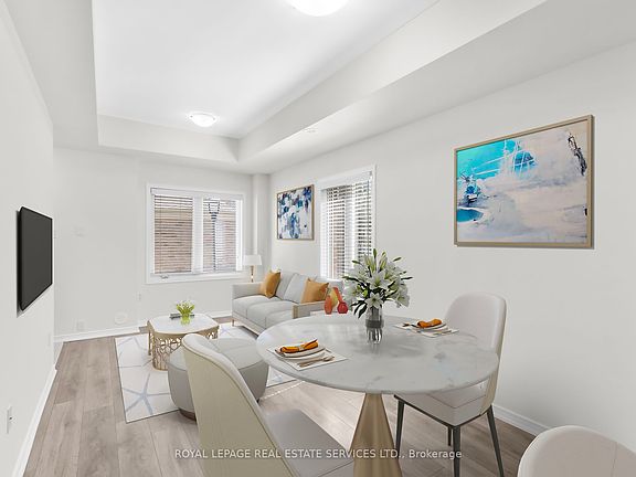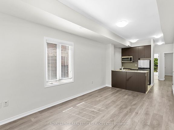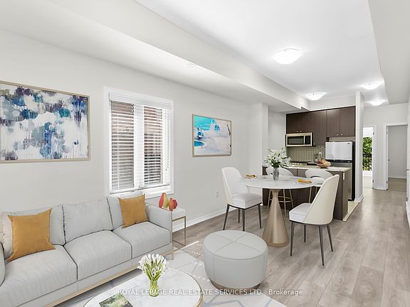 Welcome to this stunning 2-bedroom, 1 bathroom END UNIT at Bloom Park Towns, backing onto beautifully maintained green space. This bright and trendy home features large windows, wide plank flooring, smooth ceilings, and is freshly paint throughout. The open-concept living space flows in the contemporary kitchen with extended espresso cabinetry, granite countertops, tile backsplash, stainless steel appliances, and tile flooring. Offering Two well sized bedrooms, both overlook the green space, with the second bedroom offering walkout access to a private balcony. The 4-piece bathroom includes stone countertop and tile finishes, and in-suite laundry adds everyday convenience. This well managed low condo fee property offers 1 parking space and 1 underground locker. Residents also enjoy access to the complexs outdoor pool with underground visitor parking. Ideally located with quick access to the TTC, Highway 401, and just steps from Harryetta gardens, walking trails, shopping, grocery stores, cafés, and restaurants. Make your real estate dream come true!