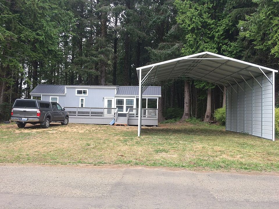 Nestled among the trees in a private development this is the place to be. Very close to beaches and recreation areas! New park model with sleeping loft, decks on 3 sides and covered patio for relaxing outside. All the comforts of home and a detached carport for your RV or boat. A large storage shed for the toys and outdoor furniture. A 500 gallon propane tank (underground) so you never run out of gas! Also an extra RV hook-up. (Closing after May 15, 2021 please)