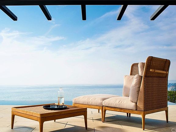 Carefully positioned on a hillside homesite to provide maximum enjoyment of its premium ocean and coastline views, this exceptional custom estate at the guard-gated community of The Strand at Headlands redefines contemporary seaside living. Anticipated to be complete in July 2020, the architectural showplace blends the warmth of woods and other natural elements with the drama of high ceilings, vast living spaces, and state-of-the-art finishes, appointments and behind-the-scenes systems. Reflecting the sought-after talents of Brandon Architects, the three-level estate encompasses approx. 7,915 s.f. and features 5 ensuite bedrooms, 6 full and 2 half baths, an office/ den and a split 4-car garage. Introduced by an outdoor bridge, the stunning foyer leads to a vast open space with high ceiling that includes a formal dining area, great room with glass pocket doors to the rear terrace, and an oversized gourmet kitchen with island, bar seating, walk-in storage pantry, top-of-the-line appliances, and a grand-scale butler pantry/catering kitchen. This main level also boasts a five-star master suite with enormous walk-in closet, a spa tub, and pocket doors to a sun deck. The top level hosts two separate bedroom suites, and the subterranean floor is an entertainer's dream complete with a grand lounge, pub bar, custom home theater, a private grotto, media room, and a gym with sauna. Breathtaking ocean and sunset views enhance a terrace with infinity pool, spa and fire pit.