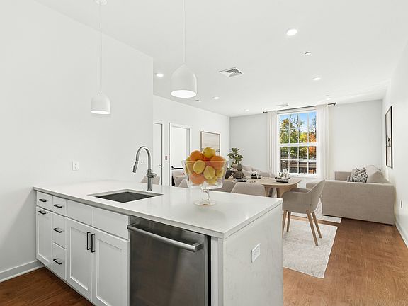 Step into this luxury unit that offers refined elegance, modern design, and privacy all in the heart of downtown Darien's premier neighborhood, The Corbin District. This spacious one-bedroom w/ ensuite bath features an open floor plan with 9' ceilings and oversized windows that provide abundant lighting. There is a private lobby dedicated to the building with an elevator from the parking garage to each floor level and the roof deck. Separate powder room, full-size laundry, and a modern custom kitchen. Just 2 blocks from the Metro North train station, this is a community that has become a destination. The Corbin District is a lifestyle change that offers carefree living surrounded by a vibrant downtown with upscale amenities. One garage parking spot included in rent. Additional garage parking spot available for an extra fee.