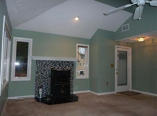 Desirable & hard to find FIRST FLOOR, 2 BEDROOM townhouse END UNIT! FIRST FLOOR Master with UPDATED bathroom and closet organizer. Open floor plan! Living room & Dining Room have Cathedral Ceilings & much Natural Light! Glass slider from DR leads to Private Deck Area. Updated fireplace hearth with glass tiles and pellet stove. NEWER Furnace (2010) and hot water tank! Freshly painted interior! Spiral staircase leads to loft area with cathedral ceiling. How will you use the loft area? Office? Work out area? Play Room? Media Room? Enjoy summertime FUN: POOL, TENNIS and 9 hole GOLF & Putting Green on premises!