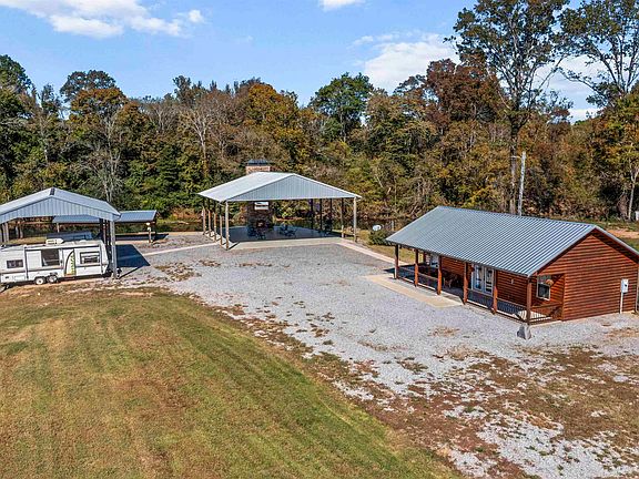 Cozy Cottage on Terrapin Creek – 2.83 Acres with 200 Ft of Waterfront! My Mom always said two things they don't make more of? Time and Land!...Don't miss this rare opportunity in time to act now, and discover peace and privacy with this lovely 1 bedroom fully equipped home nestled along the beautiful Terrapin Creek. Set on almost 3 acres, this one-of-a-kind property features approximately 200 feet of scenic waterfront — perfect for kayaking, fishing, or simply relaxing by the water’s edge. Several covered concrete pads and pole barns with plenty of room for storage, extra vehicles, and RVs! The true centerpiece is a stunning 40’ x 40’ pole barn complete with a majestic 30-foot rock fireplace!! — a showstopper for entertaining, gatherings, watch Football with a view, or enjoying quiet evenings year-round. Whether you’re looking for a serene getaway or a full-time retreat surrounded by nature, this property offers the best of outdoor living with all the comforts of home.