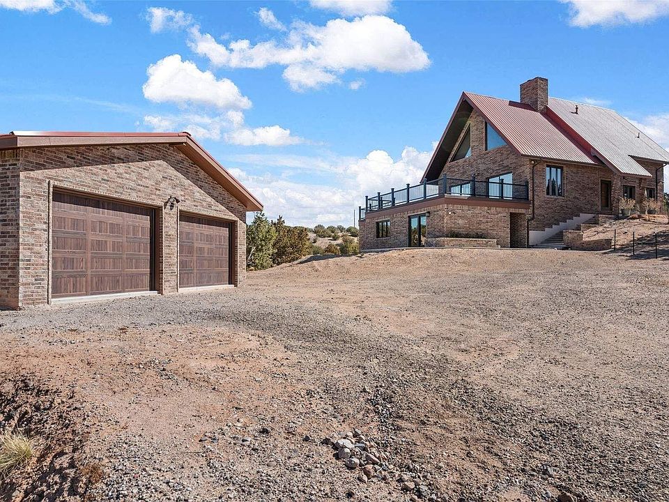 Fabulous multi familiy property! 4.98 acres of space, views & a lifestyle that invites quality living, excellent horse facilities & 2 separate garages, one w-heat/cool, room for lift, other w-heat/cool plus bathroom. Must see this well maintained Northern NM brick beauty. 5256 sf includes a 1304 attached 1 BR guest quarters. Main level of home features a living room, formal dining, bedroom w/on suite, spacious kitchen, nook for informal dining, half bath & over 1300sf of open Trex deck! Upstairs features primary suite, 3rd BR, loft & is open to main level. Lower level offers family room, 4BR or office, bath, laundry and a 1304sf attached guest house w/full kitchen, living, plus a 18 X 22 BR w/washer dryer hook ups, and separate entry also. A great place to call home!