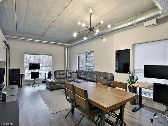 Move In Ready, Nicely Upgraded Loft Style 1 Bed,1 Bath ,condo with RARE 2 OWNED Parking Spots, one of the parking spots is equipped with your own personal Nema 14-50 electric car charging outlet (50 AMP,240 Volts). Ideal location in sought after uptown Silver Thread Lofts. This corner unit features wrap around windows with lots of natural light, modern open concept floor plan, exposed concrete high ceilings, Stainless Steel Appliances, Granite counters, Tile Back Splash, ensuite laundry with Front Loader Washer and Dryer. This Boutique Style building has , Elevator, BBQ area, Fitness Centre, Rock Climbing Wall and Meeting Room, quick access to Hwy's, and walking distance to almost everything you need. With this location you are only minutes away from Downtown Kitchener and Uptown Waterloo. This unit is a MUST SEE..