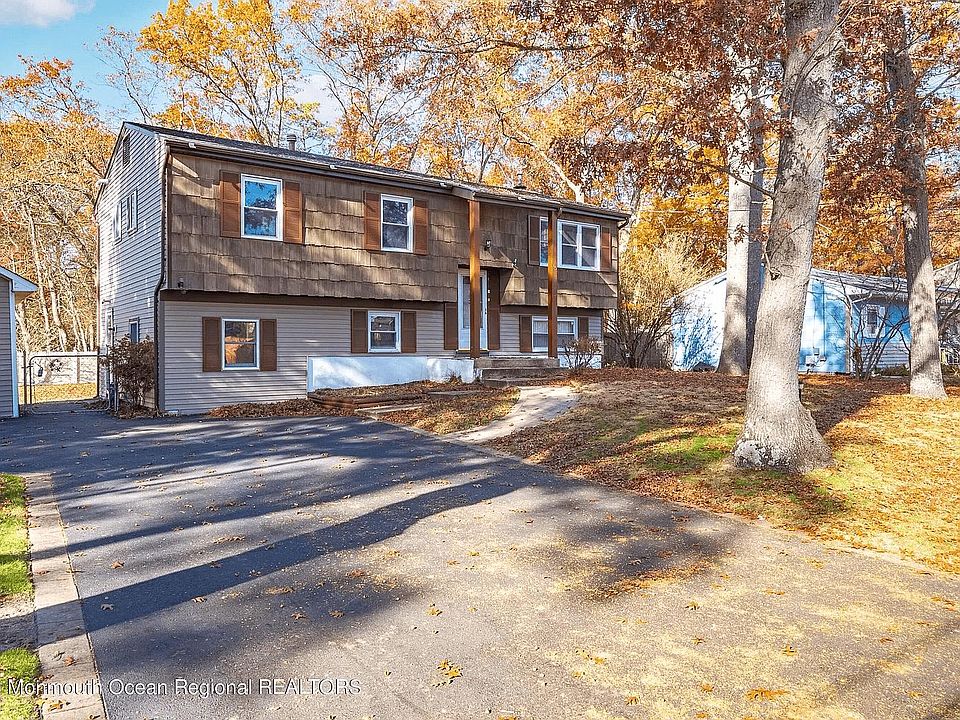 This house is a captivating bi-level home that unfolds over 1,800 square feet, boasting 4 bedrooms, 2 bathrooms, and a generously sized quarter-acre lot.