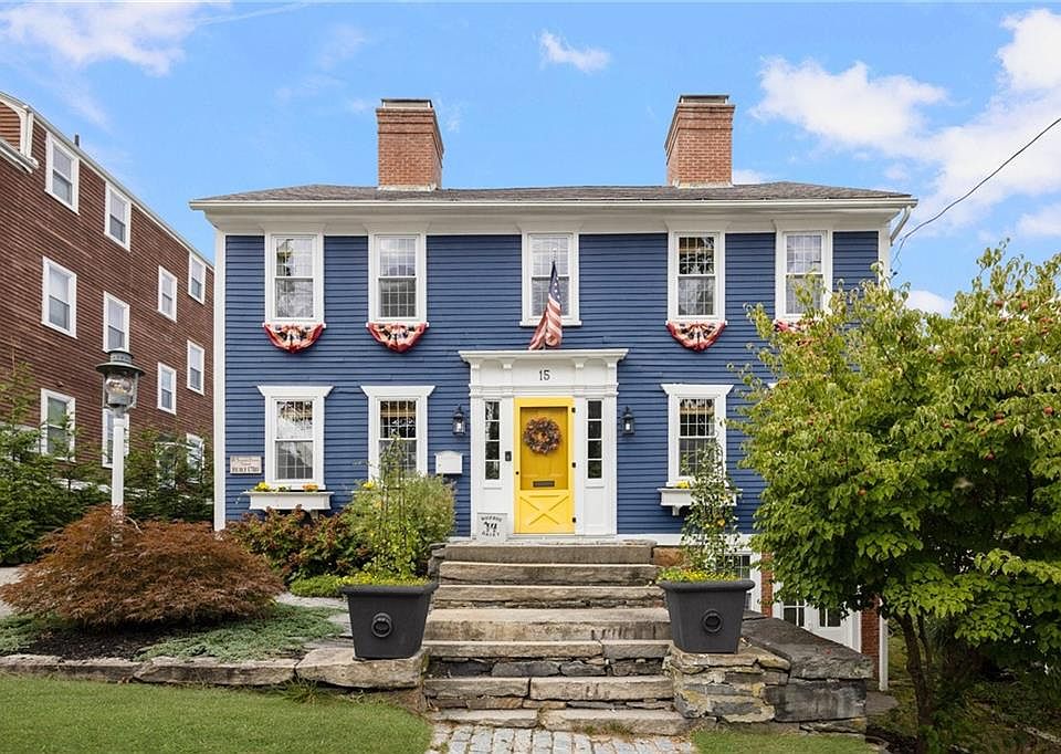 Welcome to the Jeremiah Greene House at 15 Division Street, where timeless elegance meets modern convenience. This stately Georgian Colonial exudes classic charm with modern updates. Upon entering, you're greeted by a grand foyer that leads to a formal dining room, one of the home's eight fireplaces enhancing its warmth and character. The updated kitchen boasts new cabinetry, granite countertops, and a spacious open concept eat-in area. The main level also features a versatile bedroom and a cozy library/office. Upstairs, the master suite offers a luxurious en suite bath and a walk-in closet, complemented by two additional bedrooms and a convenient laundry room. The walk-up attic, with its cathedral ceilings, presents potential for additional living space. Outside, the private yard includes a composite deck with a built-in hot tub and trellis, ideal for outdoor relaxation. Additionally, a second lower-level composite deck and brick-faced patio overlook a manicured lawn and beautiful perennial gardens. Located just a short stroll from Main Street and the marina, you'll enjoy easy access to charming shops, top-rated restaurants, and a local theatre, making this home as much about lifestyle as it is about living.